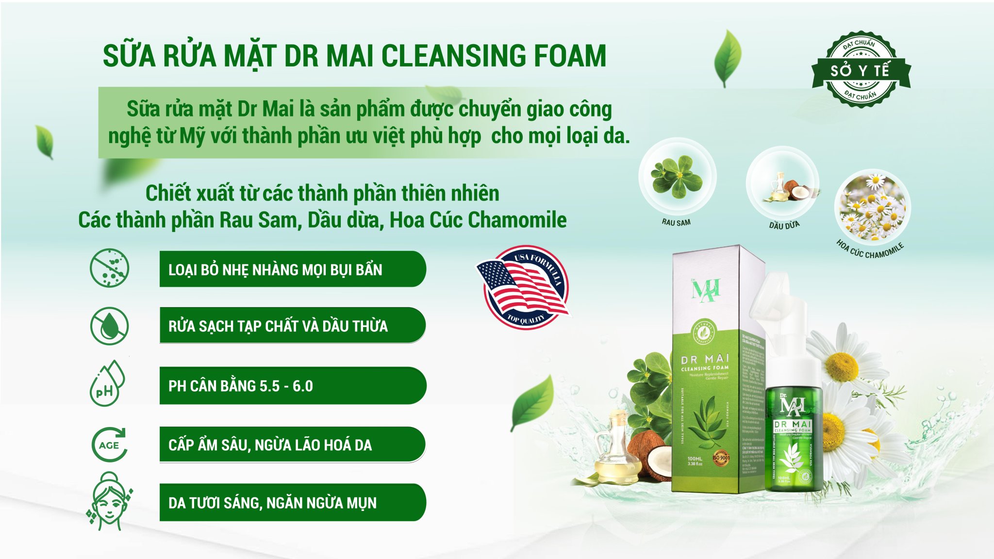 Sữa rửa mặt Dr Mai chính hãng là sản phẩm được chiết xuất hoàn toàn từ những thành phần thiên nhiên như: tinh chất hoa cúc Chamomile, rau sam, dầu dừa, Vitamin E & các amino axit nguồn gốc trái cây,…… những thành phần này có vai trò quan trọng đối với sức khỏe làn da và phù hợp cho làn da cả Nam và Nữ.