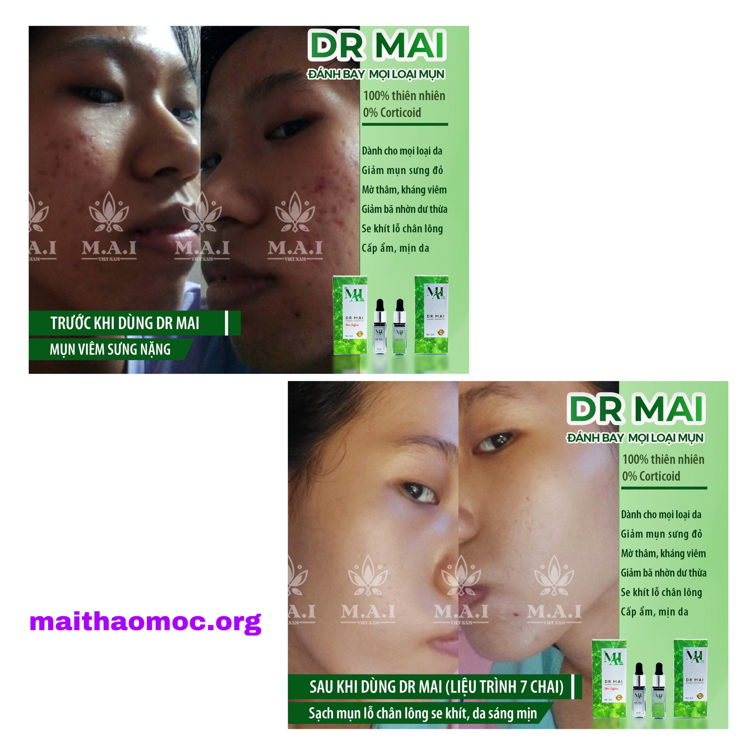 Thuốc điều hỗ trợ trị mụn Dr Mai - Mai Thảo Mộc sẽ làm sạch da, da sẽ khô và rút nhờn, điều này không đáng kể vì sản phẩm sẽ không làm bong tróc da, nên các bạn chỉ đắp mask cấp ẩm cho da là OK.