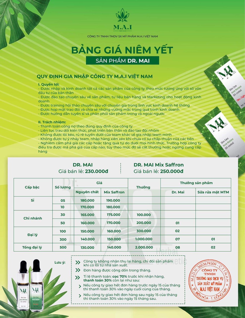 HỢP TÁC KINH DOANH – ĐĂNG KÝ ĐẠI LÍ SỈ MỤN DR MAI - MAI THẢO MỘC