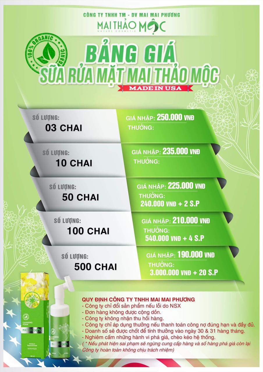 BẢNG GIÁ SỈ SỮA RỬA MẶT MAI THẢO MỘC