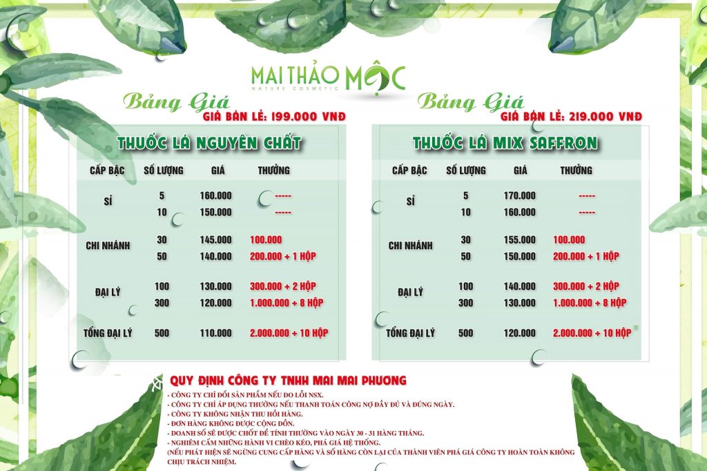 * Tham khảo mức giá sỉ tại thông báo chính thức công ty Mai Mai Phương